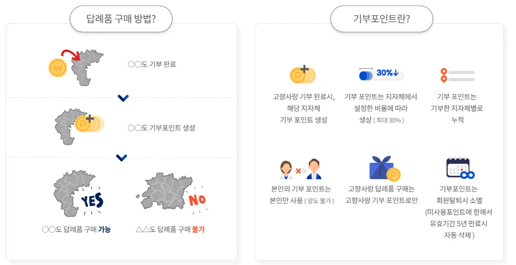 | 답례품 혜택 | 기부액의 30% | 지역 특산품으로 제공 | 배송비 대부분 무료 |